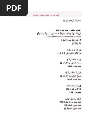 السور المكية والمدنية Pdf