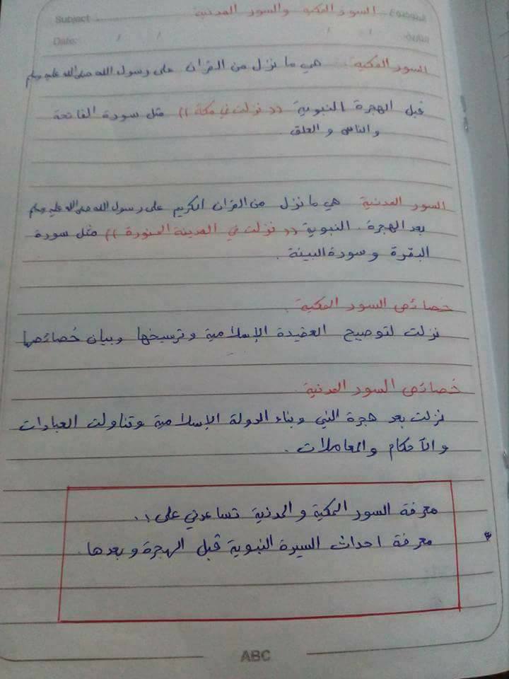 بالصور تلخيص الدرس الأول السور المكية والمدنية لمادة التربية الإسلامية للصف الخامس الفصل الأول منتديات صقر الجنوب