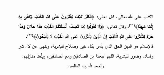 خطبة الجمعة الاجبارية بعنوان الصدق والقول السديد سبيل الاصلاح وحماية الاوطان