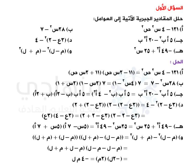 المعادلات التربيعية الفرق بين مربعين كتاب التمارين ص15 المصدر السعودي